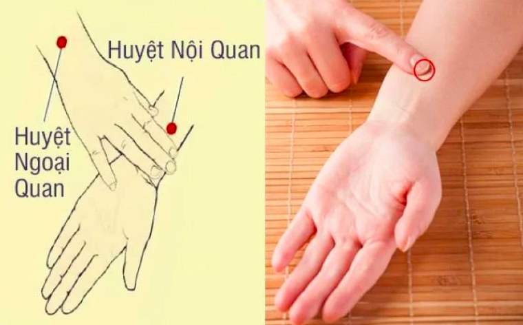 2. Bấm huyệt PC6 (huyệt nội quan)